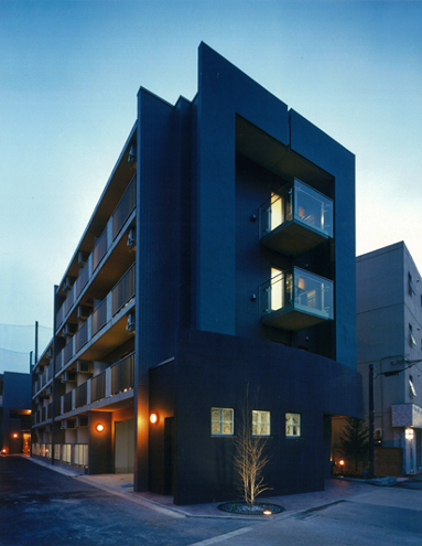 旧甲州街道からガラスのバルコニーがさりげなく見えるように意識しました。
